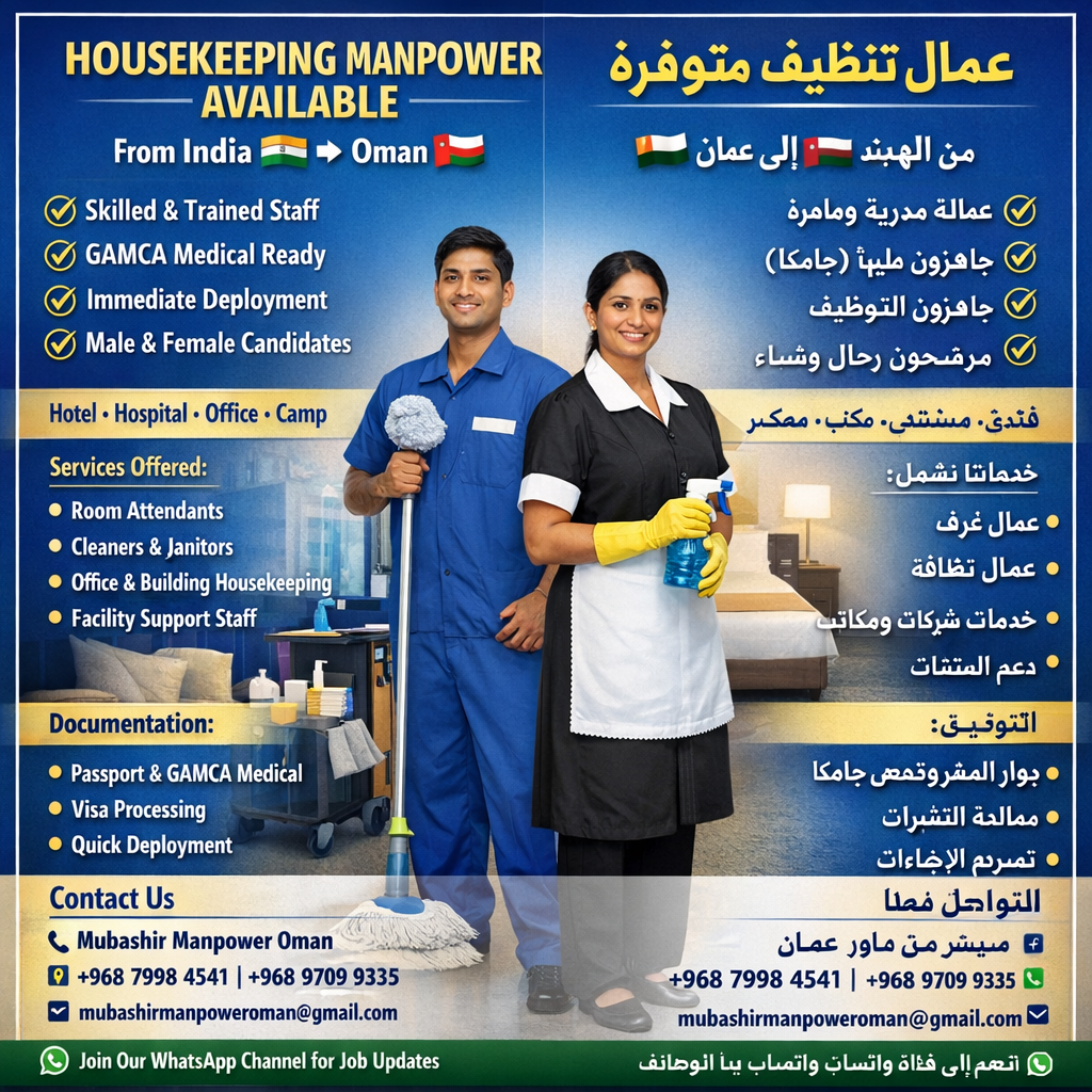 Manpower supply in Oman refers to providing skilled, semi-skilled, and unskilled workers to companies on a temporary or long-term basis, in compliance with Oman Labour Law.